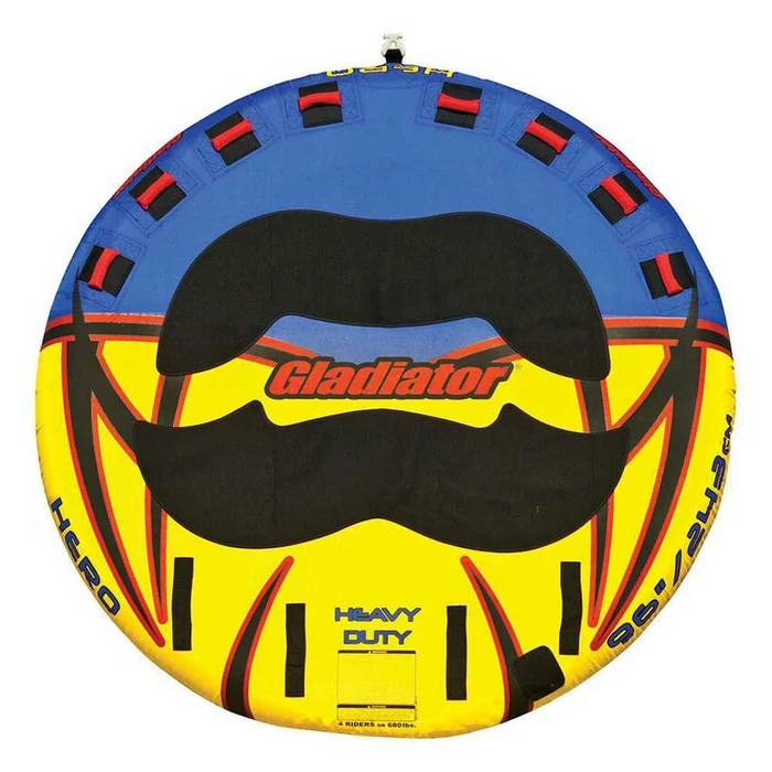 The 4-person Hero Deck Rider Towable Tube is built for speed and occasional flight off the wake! The low-profile design of this deck tube makes it easy to board, while the soft EVA foam body pads provide a comfortable non-chafing ride. Double-webbing foam handles with neoprene knuckle pads are extremely easy to hold. Lightning valve inflates/deflates 57% faster than standard Boston valve. 680-lb. weight capacity. 96″ diameter.